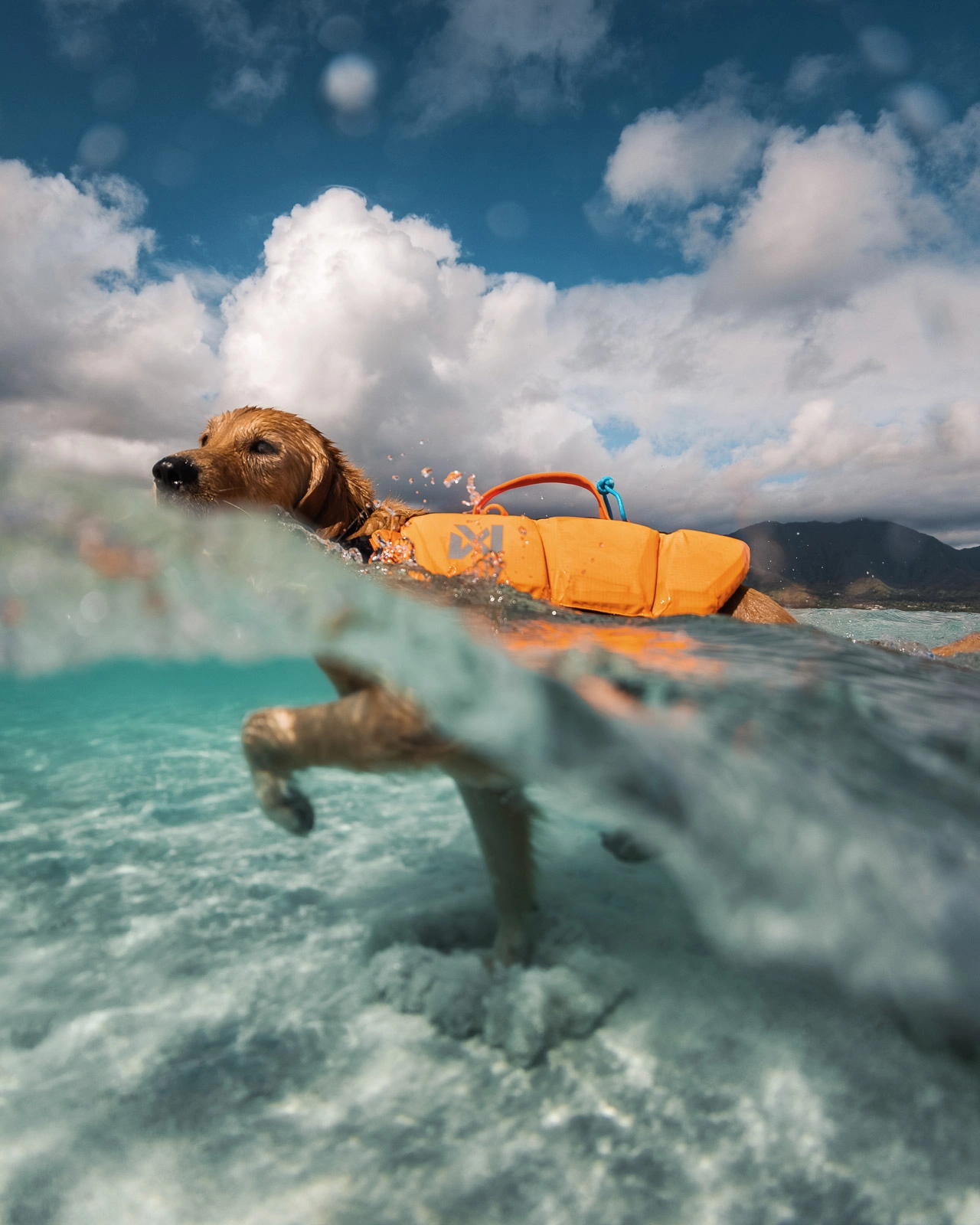 Ergonomisches Design: Zusätzlich zu den geteilten Seitenteilen ermöglicht die Form der Weste, dass sich die Vorderbeine Deines Hundes frei bewegen können. Dadurch kann sich Dein Hund effizienter im und aus dem Wasser bewegen.