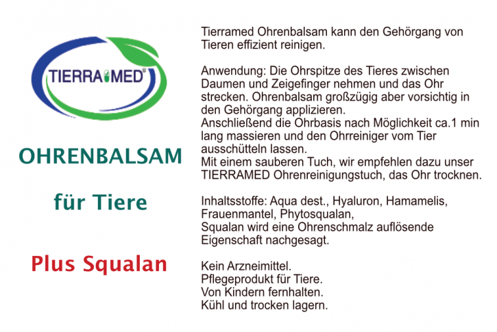 Das Ohrenbalsam plus Squalan kann bei Hunden und Katzen zur Pflege des Gehörganges verwendet werden.